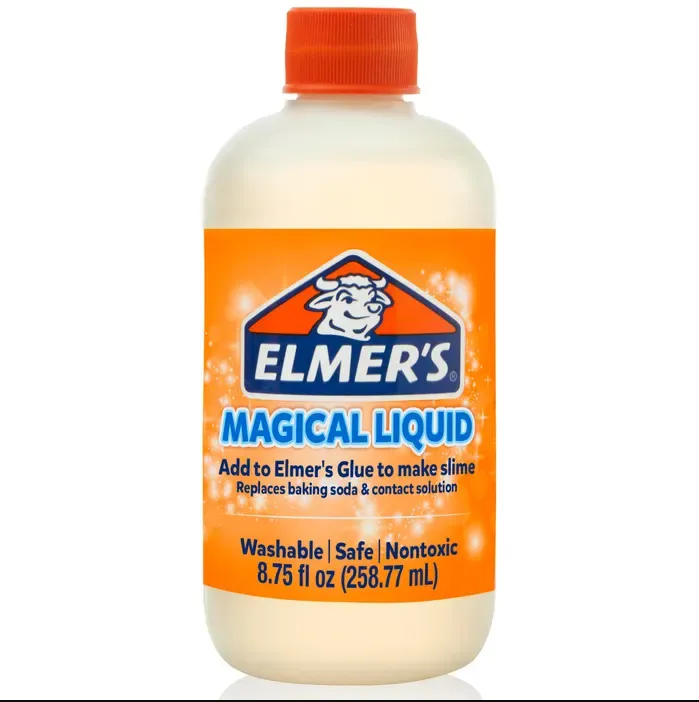 Elmer's offers Magical Liquid Slime Activator Solution so making slime is always fun and easy. Simply mix Elmer's Magical Liquid with Elmer's Glue to make multiple mess-free batches of slime for family-friendly fun. With an all-in-one formulation that's washable, safe, and non-toxic, this solution eliminates the need for contact-lens solution and baking soda. This bottle contains 8-3/4 ounces of Magical Liquid. Features •Allows everyone to enjoy the fun of making slime with less mess •All-in-one formula replaces contact-lens solution and baking soda for an ultra-quick and easy slime recipe •Mixes seamlessly with most Elmer's Glues, including Metallic and Glow in the Dark •Washable and non-toxic for safe use in early childhood environments and ages 3 and up •Large container makes several batches of slime and is easy to store for your next arts and craft project Includes: •1 Bottle of Magical Liquid