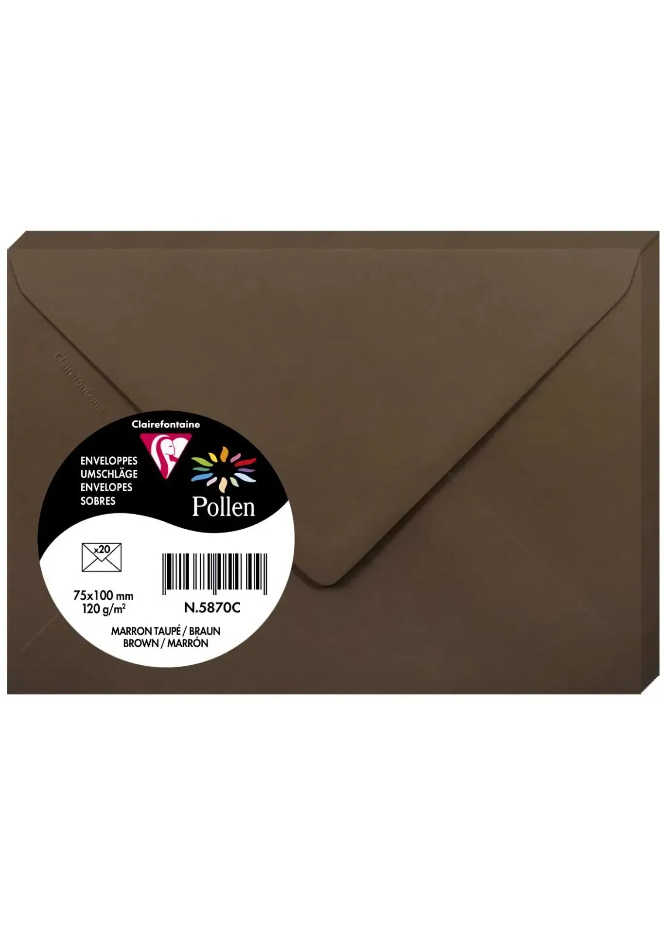 Clairefontaine Pollen Envelopes, 75 x 100 mm, 120 g - Brown, Pack of 20