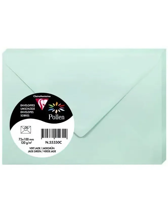 Clairefontaine Pollen Envelopes, 75 x 100 mm, 120 g - Jade Green, Pack of 20