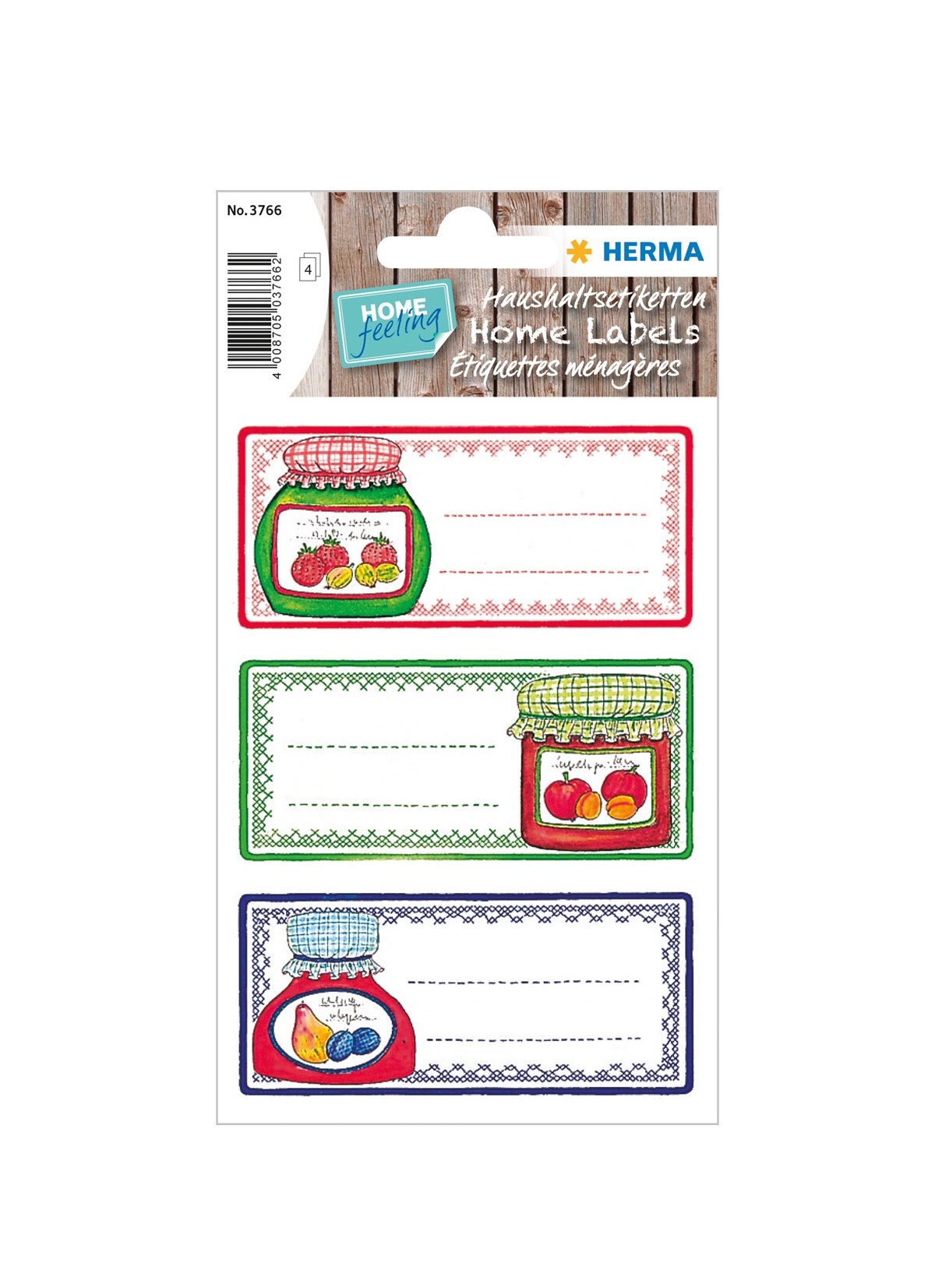 Self-adhesive kitchen labels, made of paper, colorful printed. For labeling of food and beverage or for labeling spices.