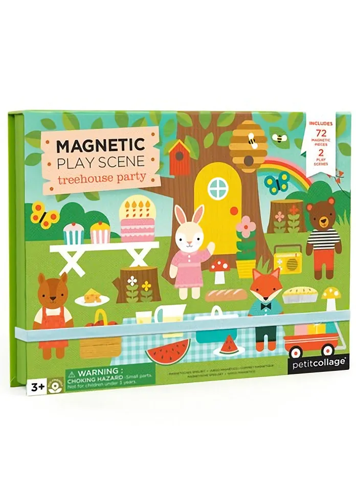 Decorate an animal treehouse scene or create a super cute animal picnic in the park! This portable playset features two backgrounds to choose from and over 70 magnetic play pieces for creative play with an endless combition of scenes. Portable easel-style box with elastic loop for easy storage between play